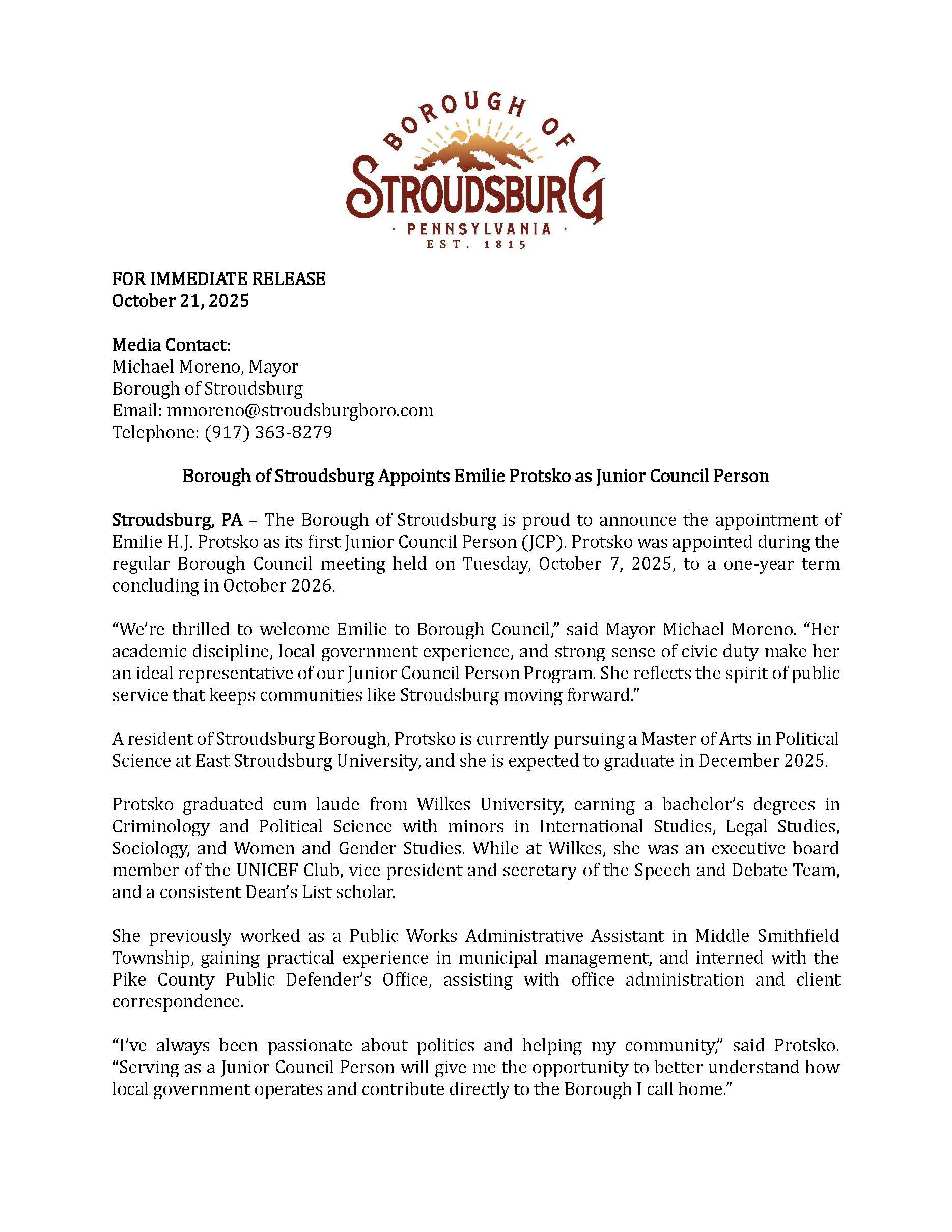 Please report any concerns to the Borough at (570) 421-5444, email lkopp@stroudsburgboro.com.